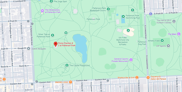 This pavilion is a breeze to find! If you enter the park at Patterson Park Ave. & Gough St., the pavilion is straight ahead. Look for it nestled between the playground and the iconic Observatory.